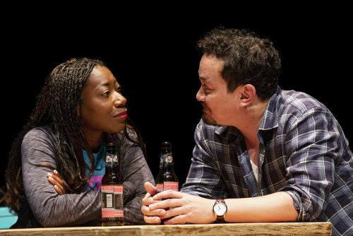 Alfie Fuller as Noxolo and Michael Braun as Gregory in Jen Silverman's "Dangerous House."